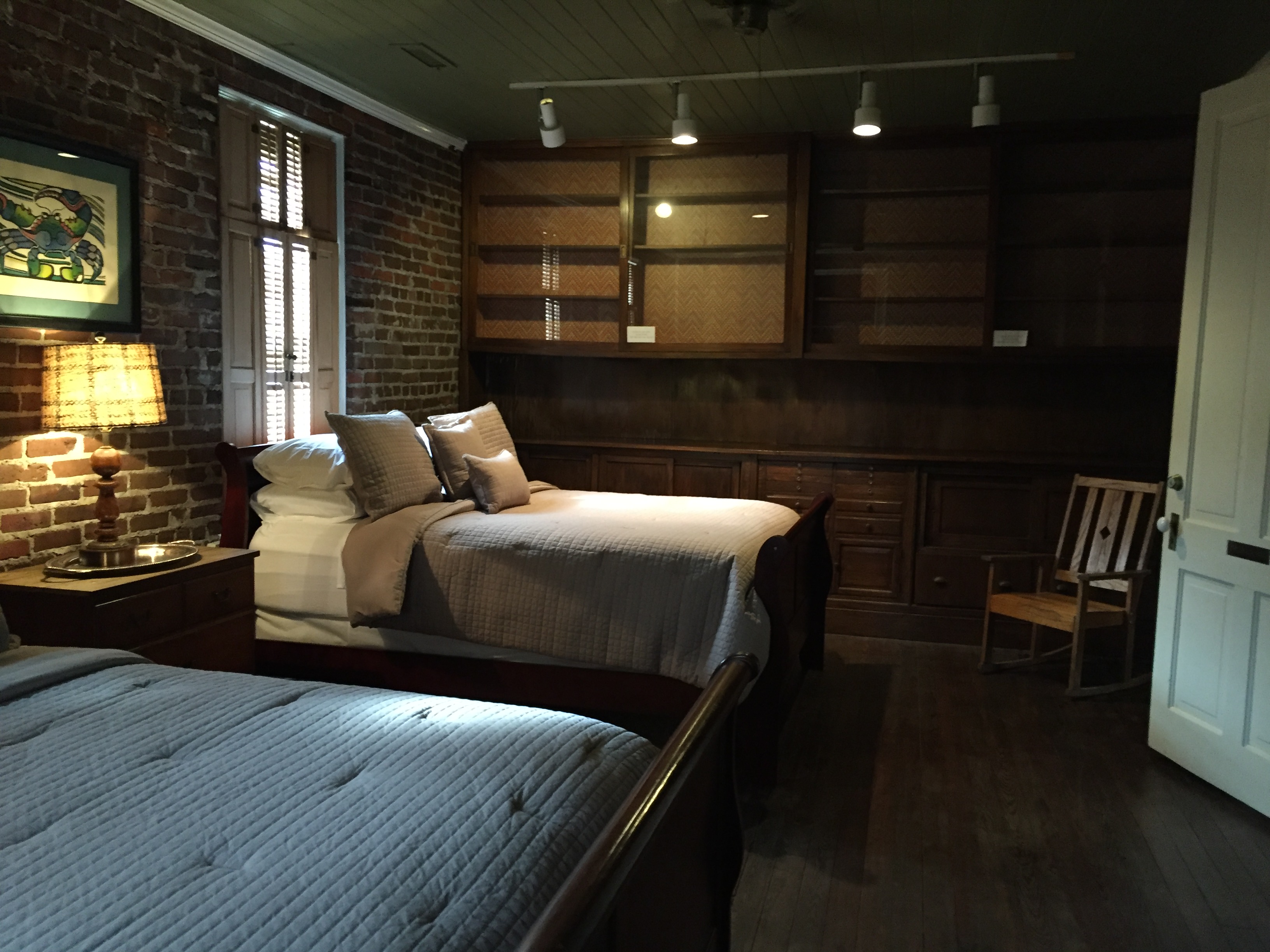The Oxbow was an ice cream parlor a hundred years ago and has the appearance of an old hotel or rooming house. The front half of the building was renovated by the present owners, who are in the process of restoring more. Stepping into the front hallway we are instantly transported to a time of stately and genteel elegance that our grandparents would have known if they had been prosperous merchants and lived in town rather than in a dog trot farmhouse miles from nowhere. A parlor, dining room and kitchen progress down the hallway followed by a courtyard with gurgling fountain beyond. It is delightful. We were given the Writer’s room upstairs, a spacious, tastefully appointed room with two comfortable queen beds. We congratulated ourselves on a perfect lodging choice.