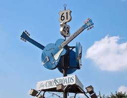 Clarksdale, with a population of about 17,000, about an hour and a half southwest of Memphis, is the beating heart of Mississippi Blues, past and present, and many say, the birthplace of the Blues. The Crossroads Sign at the intersection of US 61 and US 49 is the Blues meridian. Delta Blues starts here. At the foot of his sign, legend declares, Robert Johnson, cornerstone Blues artist, sold his soul to the devil in exchange for his musical talent. Who is to say, for Johnson, born in Hazlehurst, Mississippi, died in Greenwood in 1938 at the age of twenty seven.
