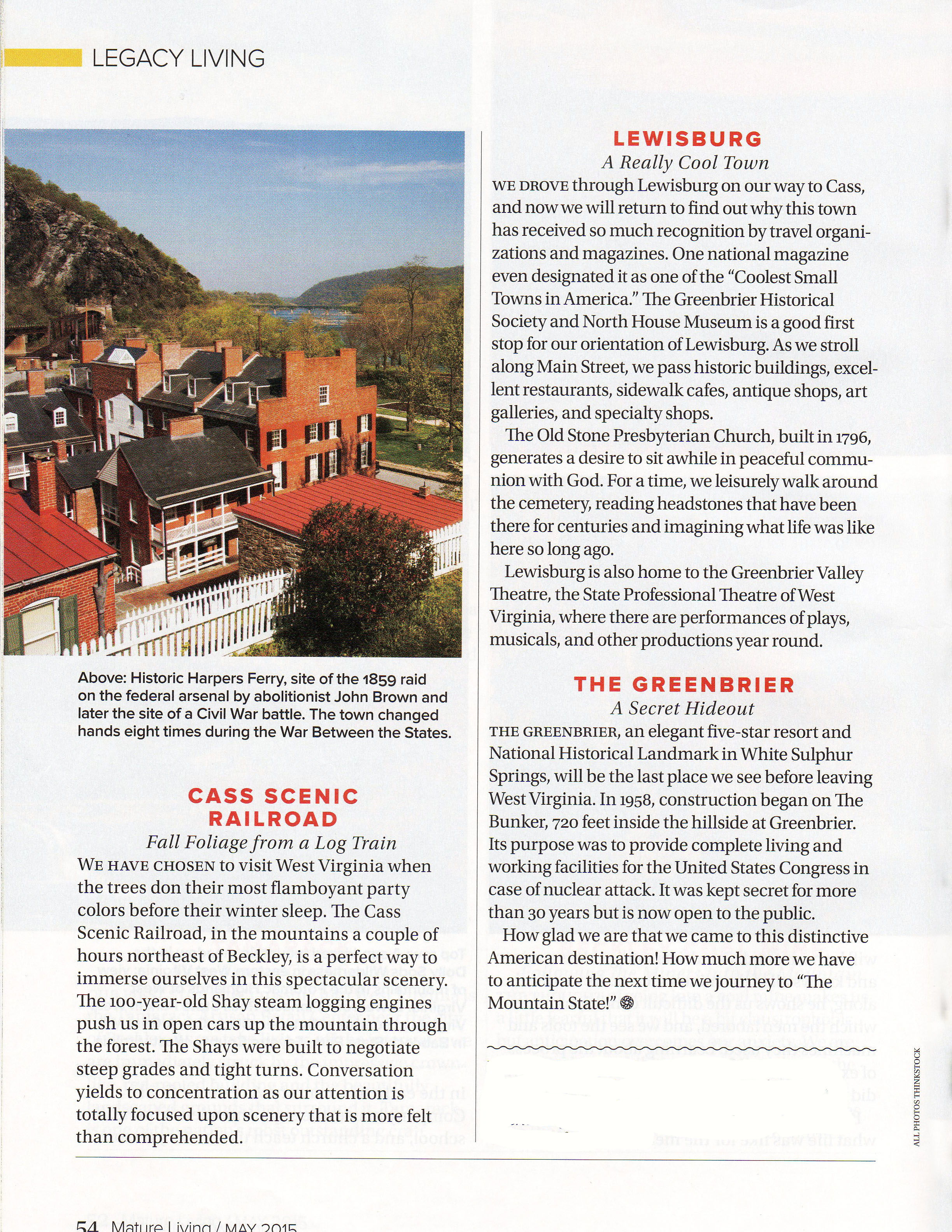 In 2015, I was a contributing writer to Mature Living Magazine, published by LifeWay Christian Resources. My monthly article, “As You Go”, shared the stories of our travels around the world.