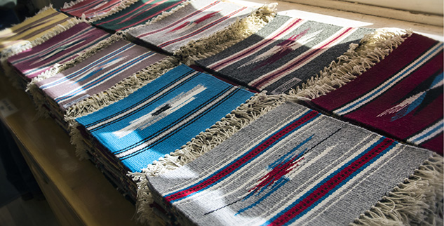It is obvious from the throw rugs, place mats and woven coasters in our home, that we love Ortega Weavers, located at CR 98 at NM 76 in Chimayo. The colorful indigenous designs add bright accents to any home. I especially enjoyed watching the weavers at work on the looms in the showroom.