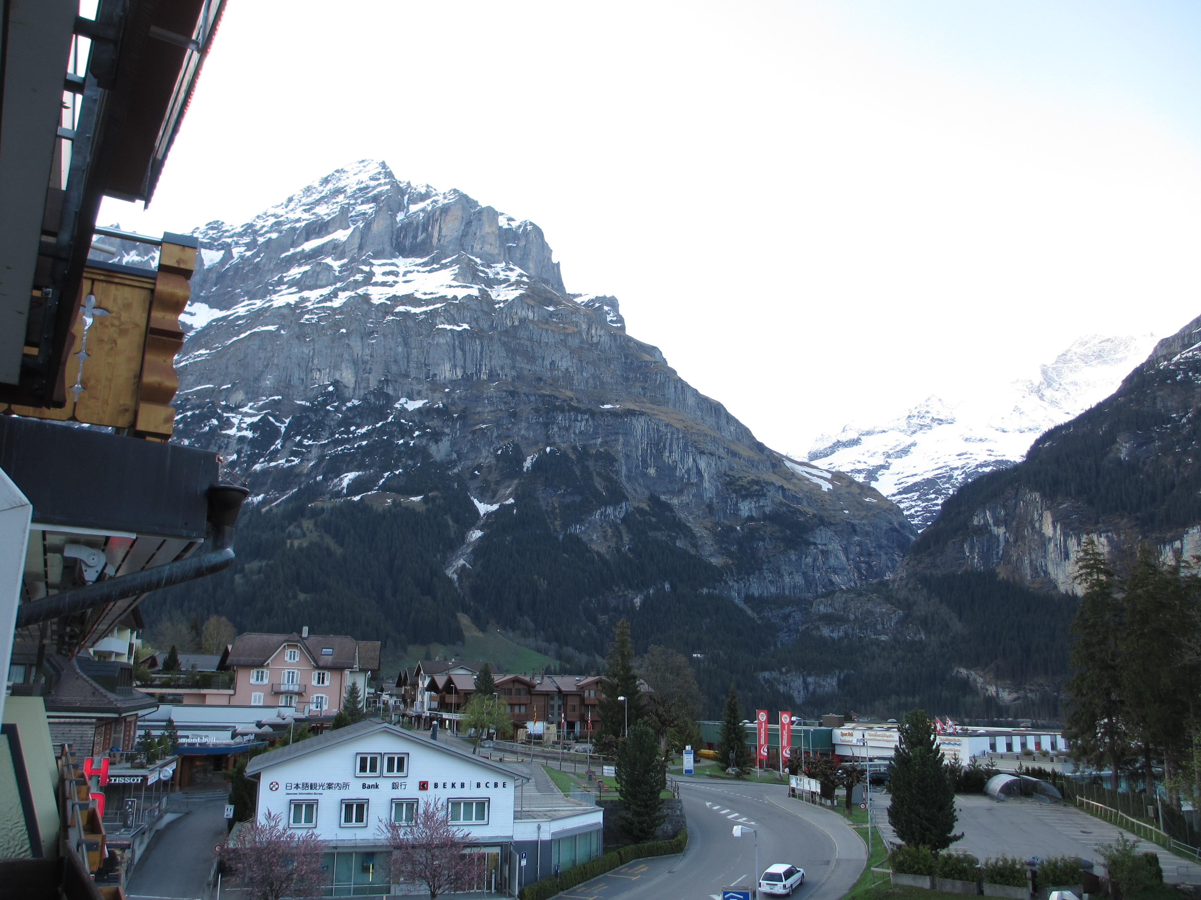 We boarded the Swiss national train for Bern at the station inside the Flughafen. The day was packed with new experiences and surprises. At each stop we were amazed at the dozens of bicycles parked at the railway station. Commuters peddle from home each day to catch the train for work in Zürich. In 1988 there was no need to lock the bicycles to protect from being stolen. The Swiss said that if anything was stolen, some foreigner was to blame. In Bern we road on a regional train system to Interlaken. From there the Berner Oberland Bahn train carried us to Grindelwald, our final destination in the high Alpine Jungfrau Region.